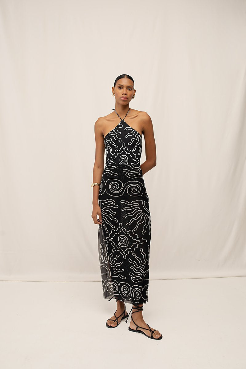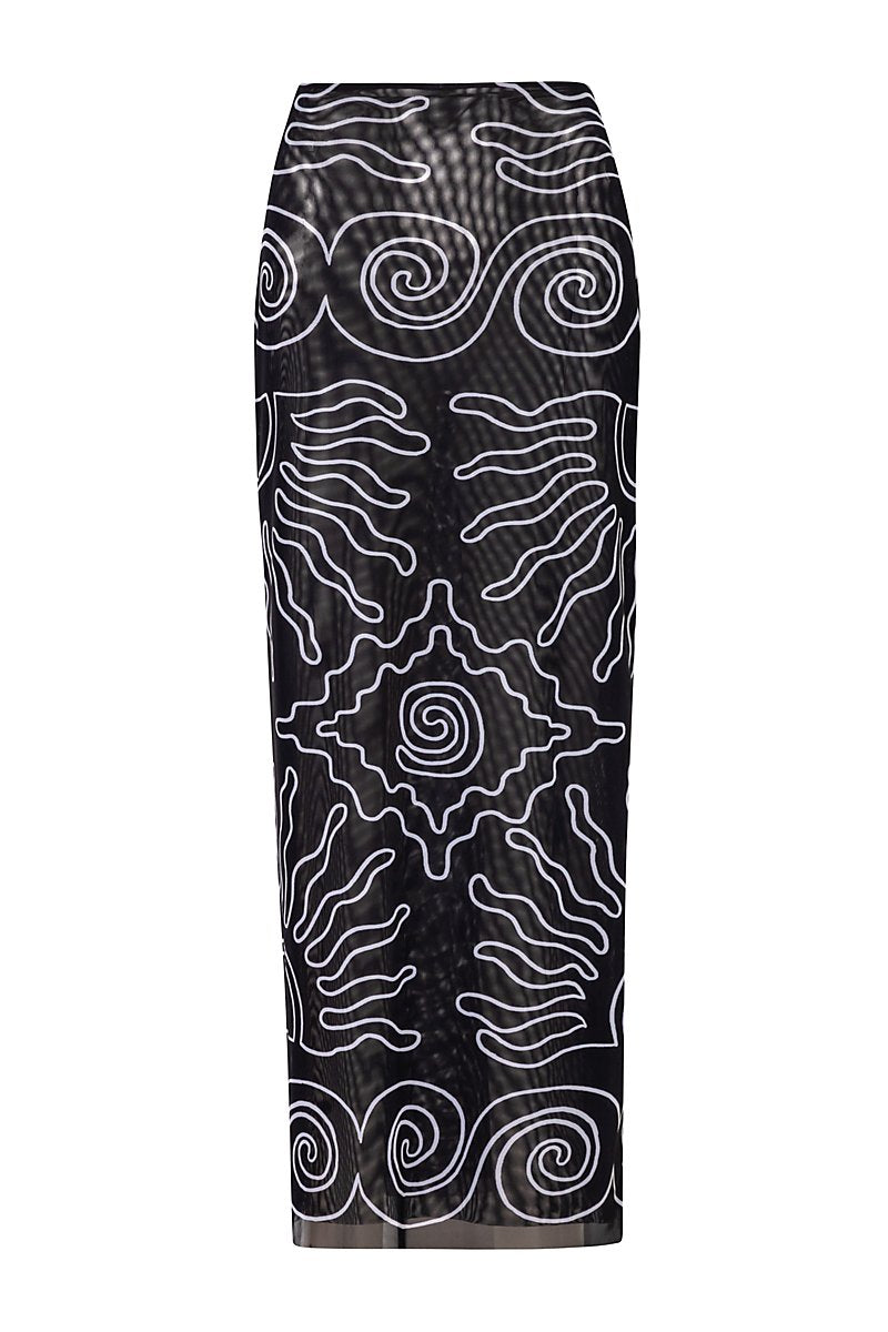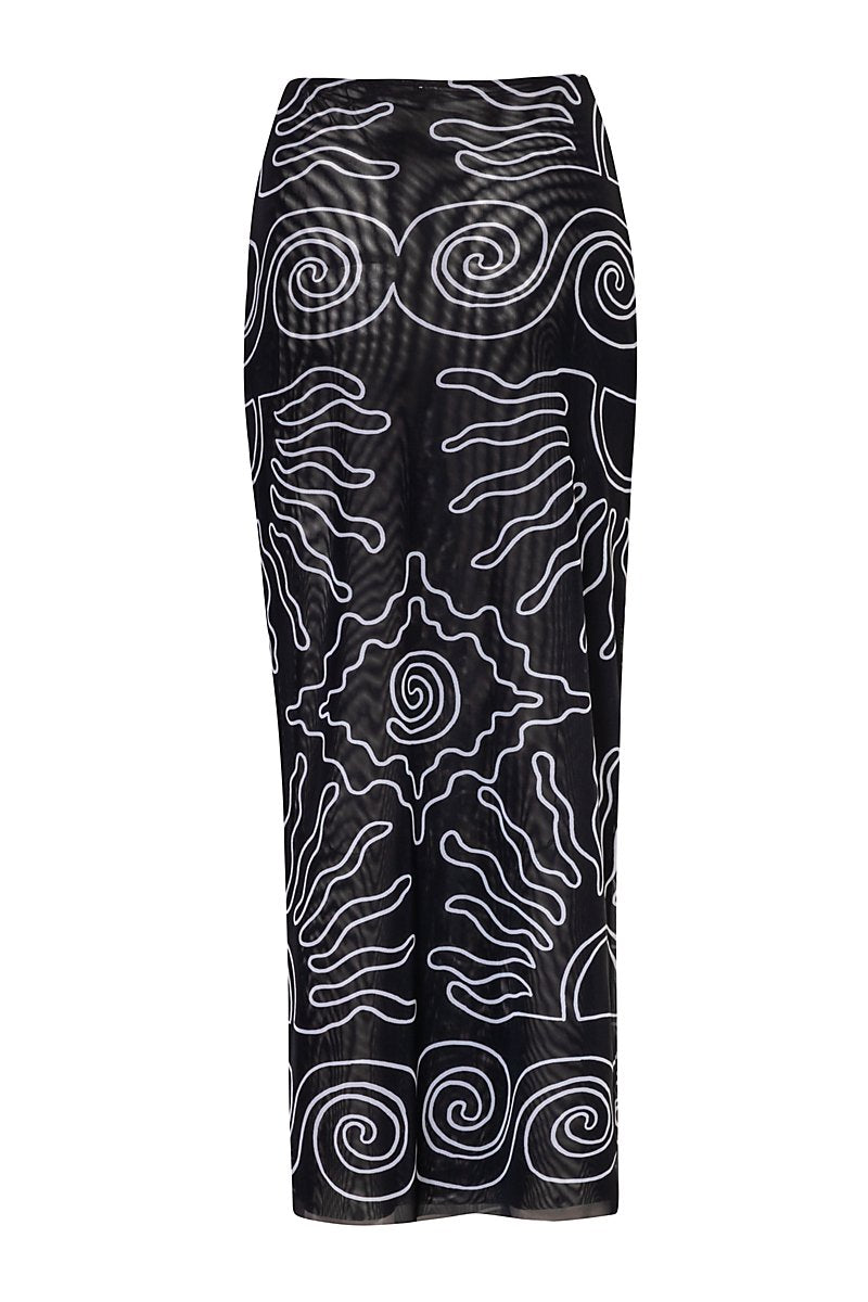 Long high waisted skirt with side slit and elastic waist. Fully lined. Made from 50% recycled polyester, 45% polyester, 5% elastane.