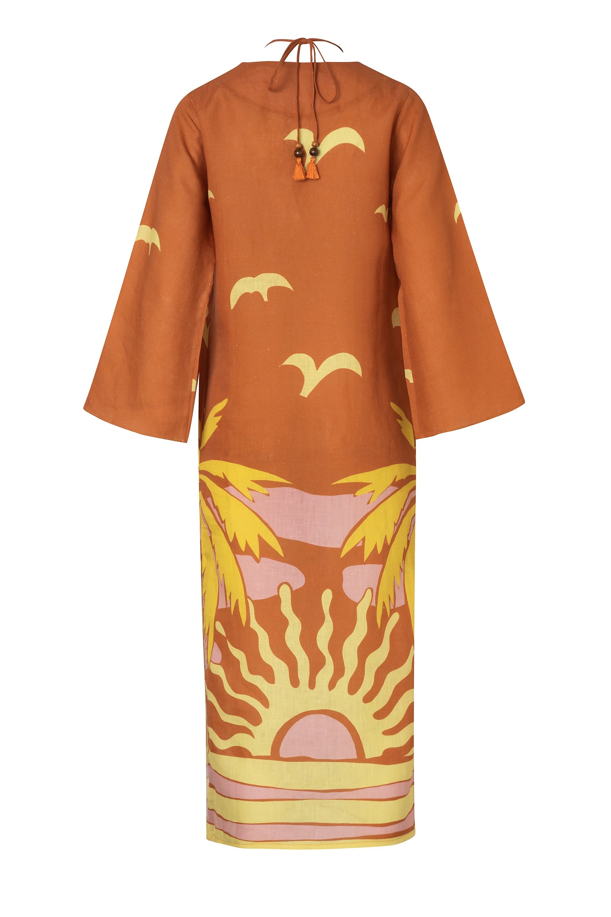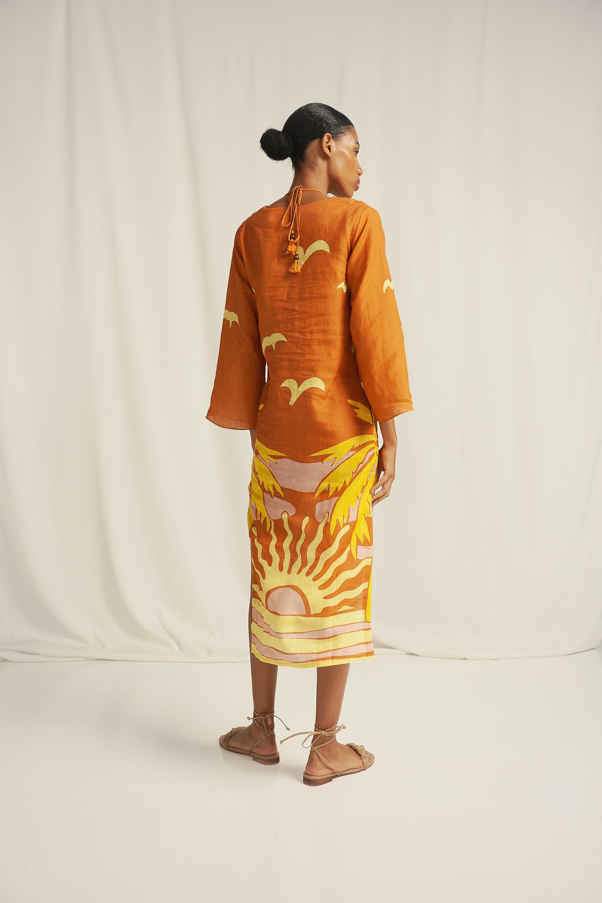 Midi kimono sleeve tunic dress, with deep V-neck. Made from 100% linen.