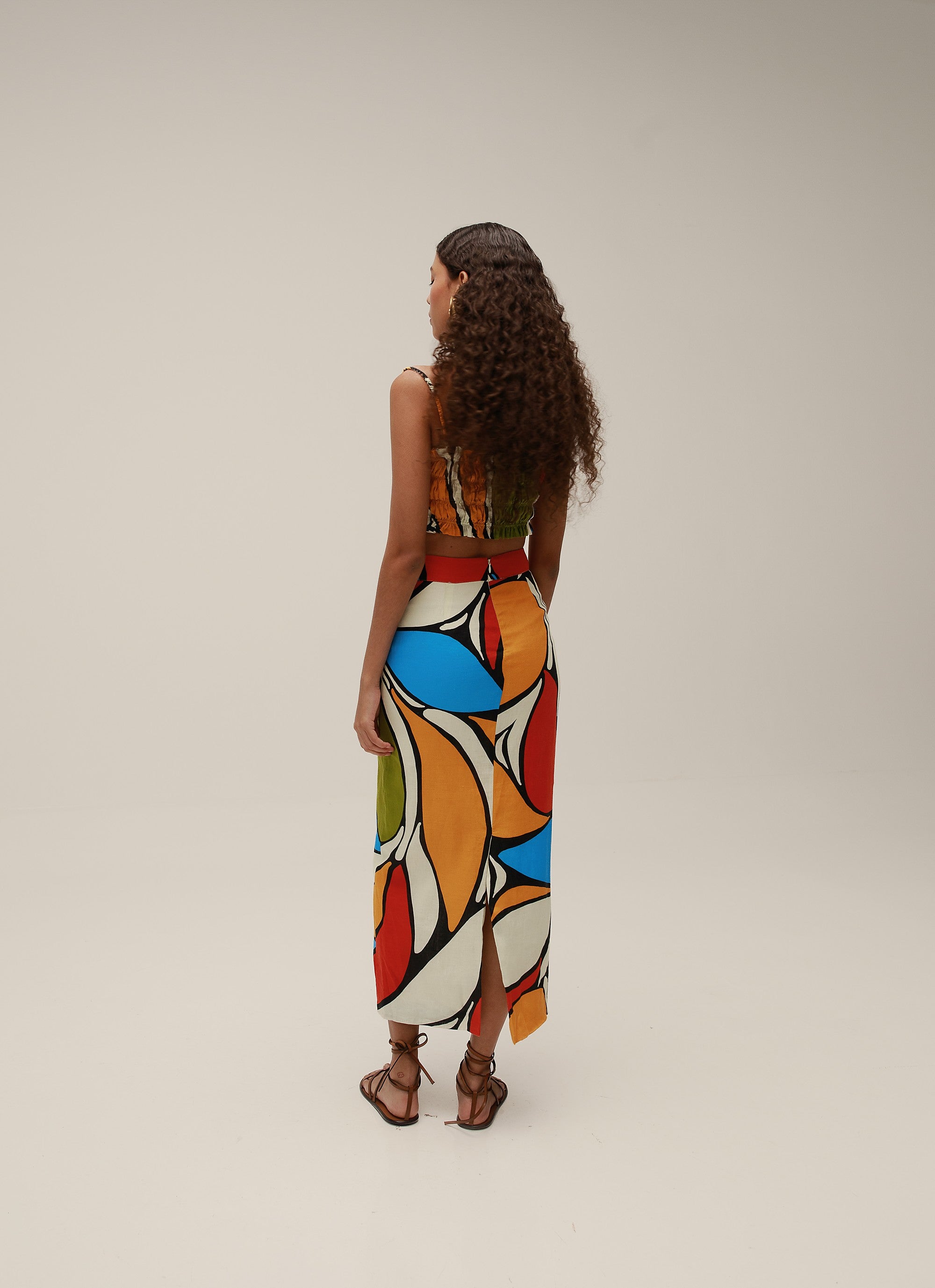 High waisted pencil long skirt featuring center back slit. Fully lined. Made from 100% Linen.