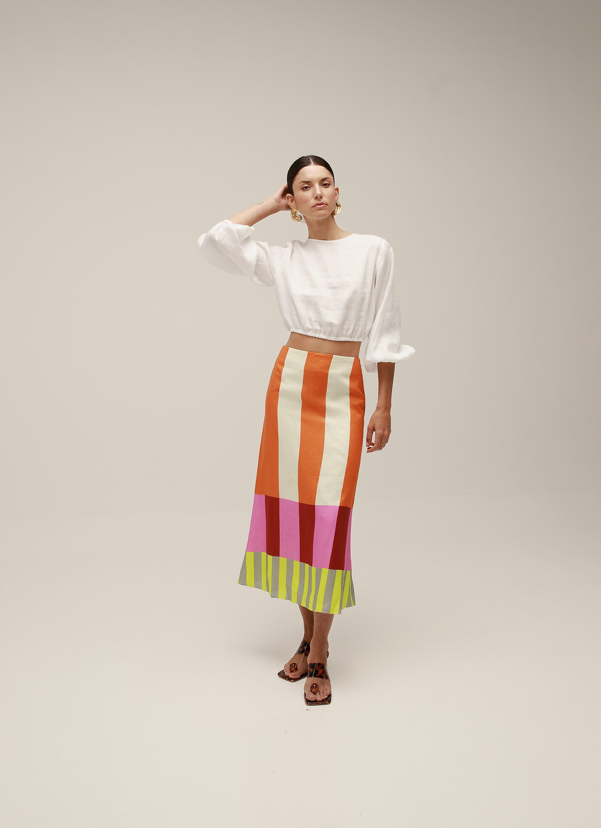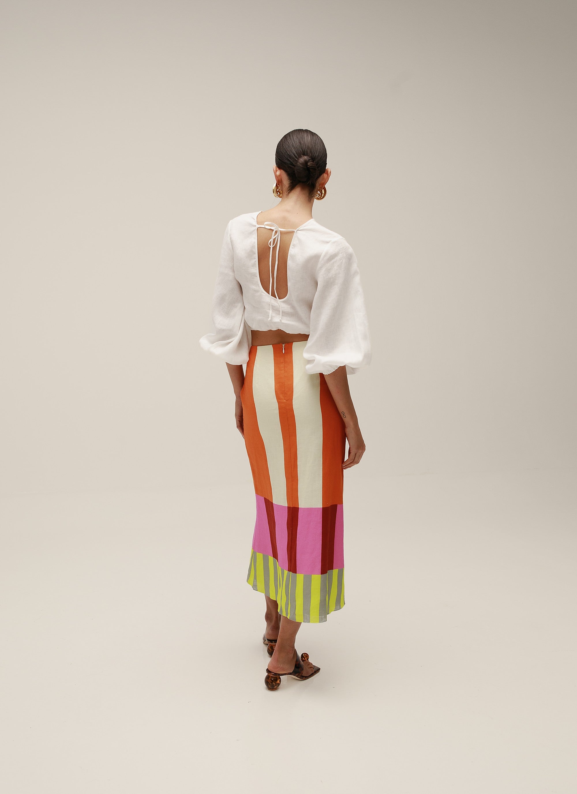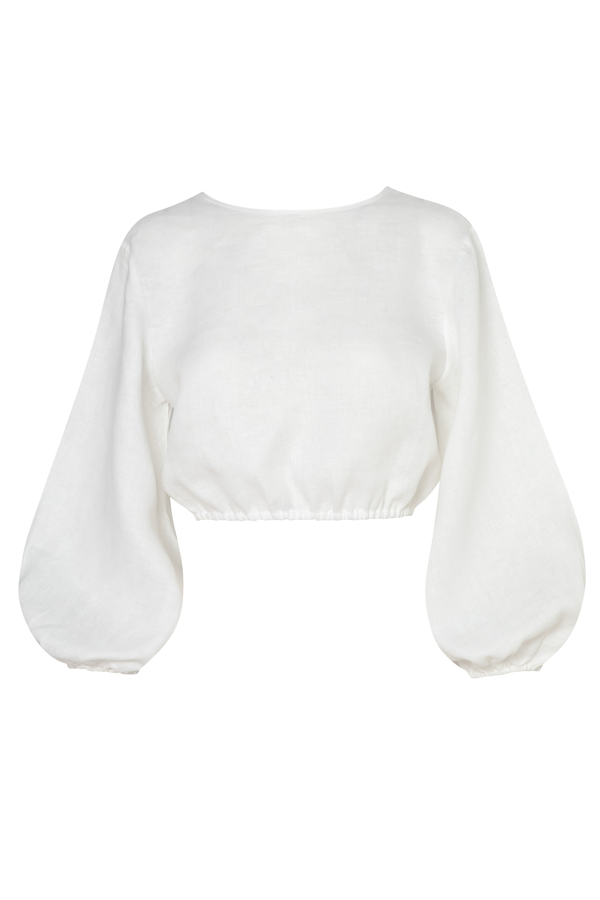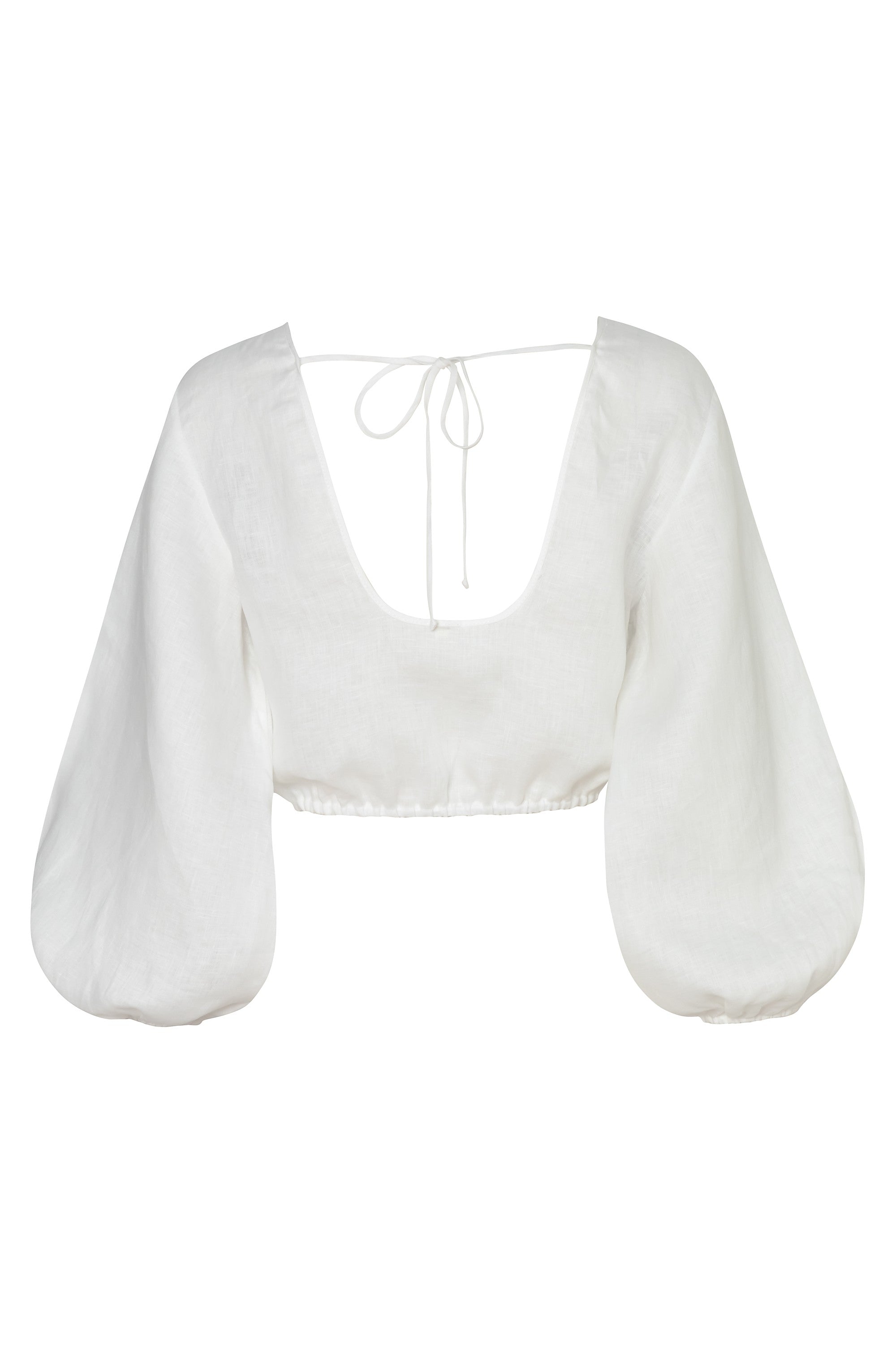 Long puff sleeve crop top with open back. Made from 100% Linen.