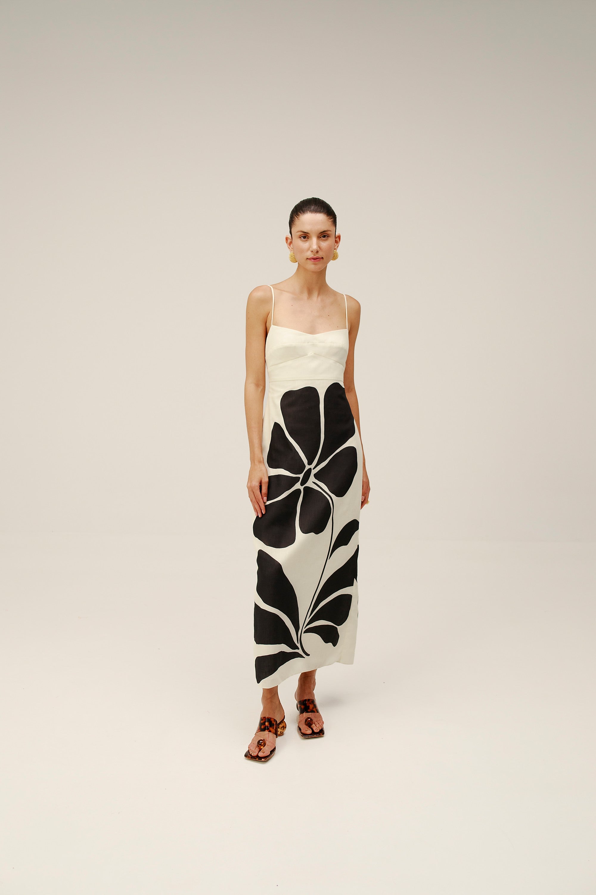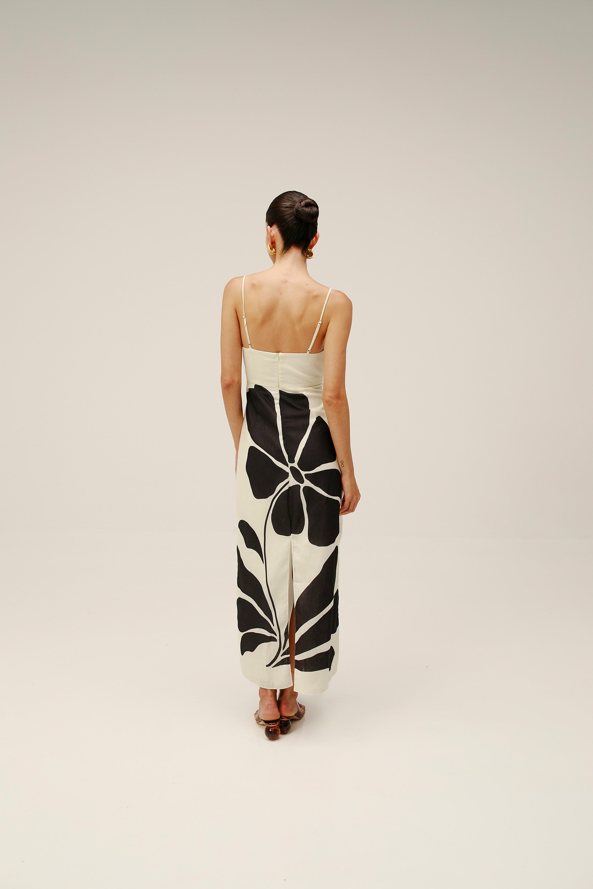 Fitted bodice long dress with relaxed skirt. Fully lined. Made from 100% Linen.