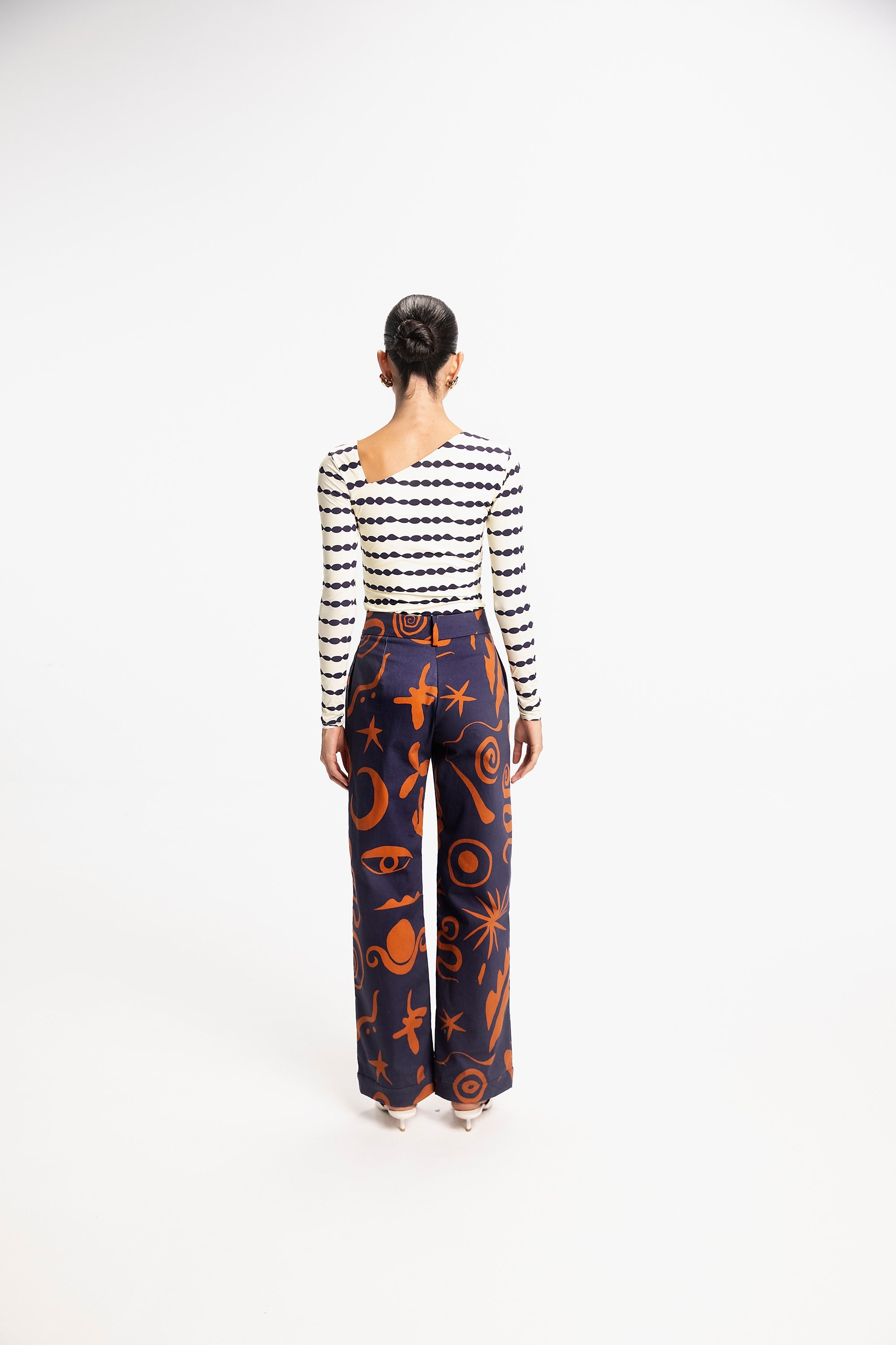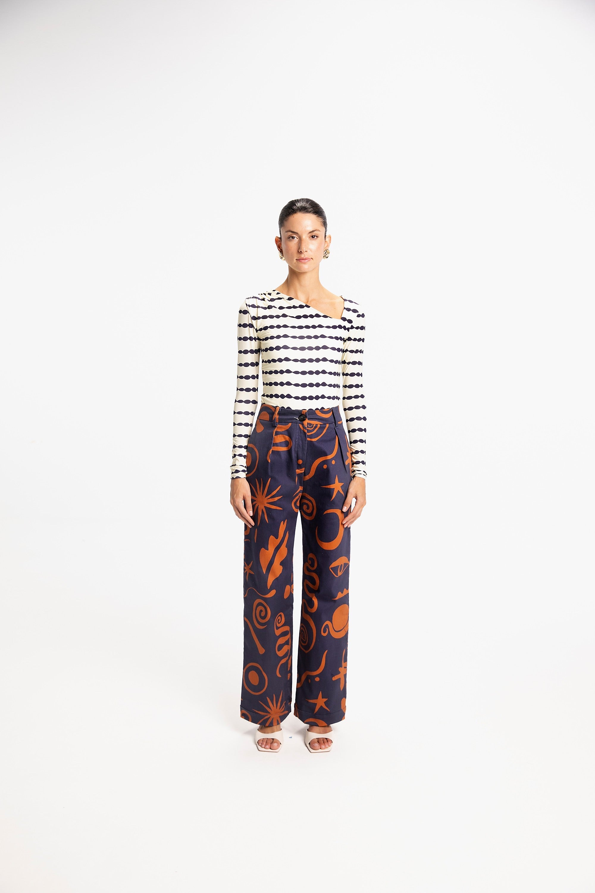 High waister tailored straight leg pant featuring side pockets and belt loops. Made from 96.5% Cotton 3.5% Elastane.