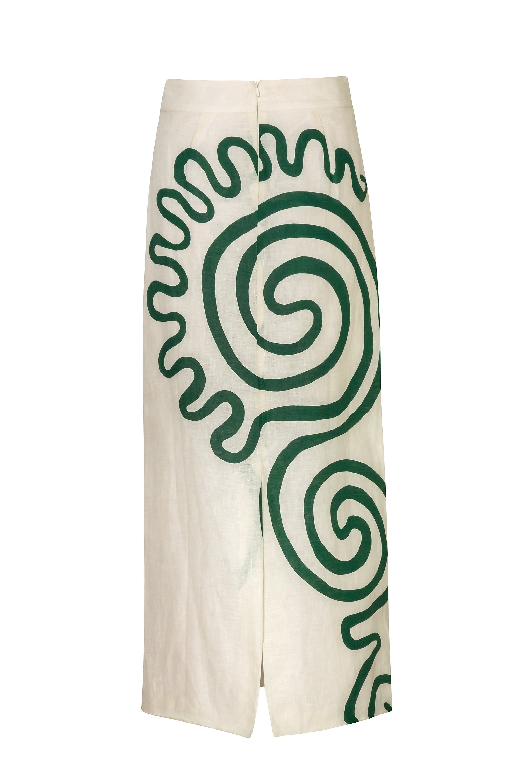 High waisted pencil long skirt featuring center back slit. Fully lined. Made from 100% Linen.