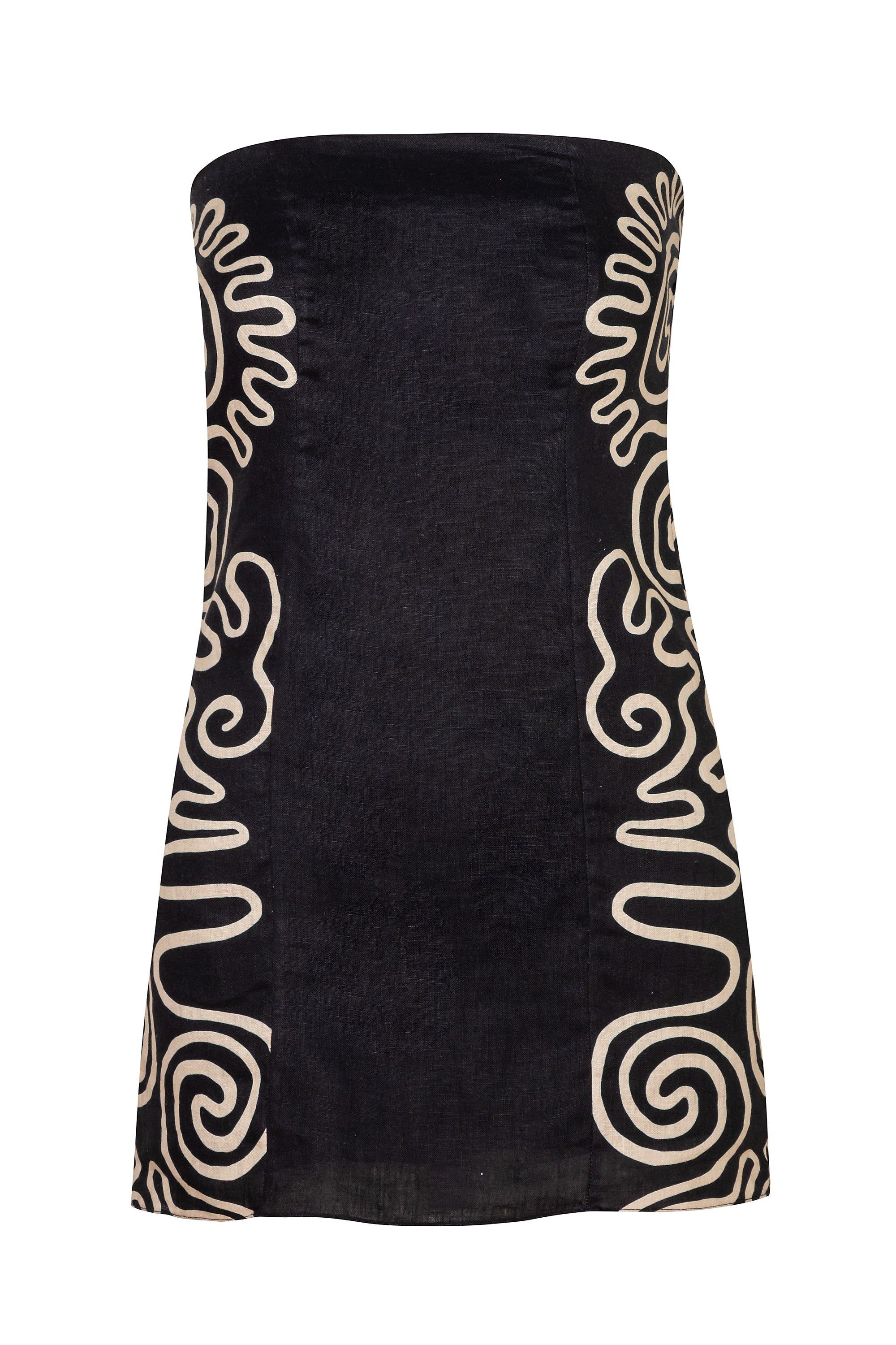 Strapless A-line mini dress featuring removable straps. Fully lined. Made from 100% Linen.