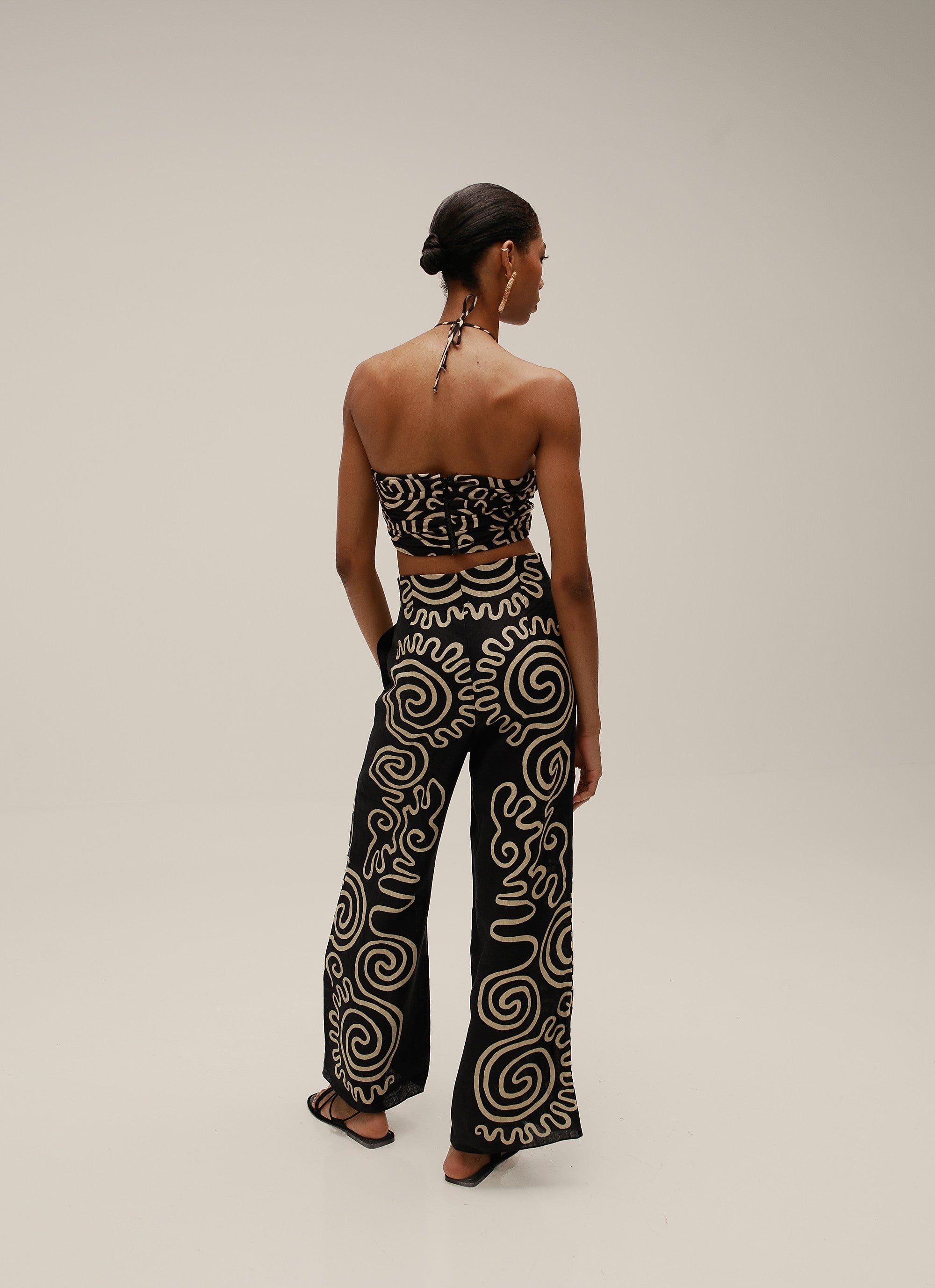 Pleated crop top along the bodice with halter style self tie. Fully lined. Made from 45% cotton 55% linen.