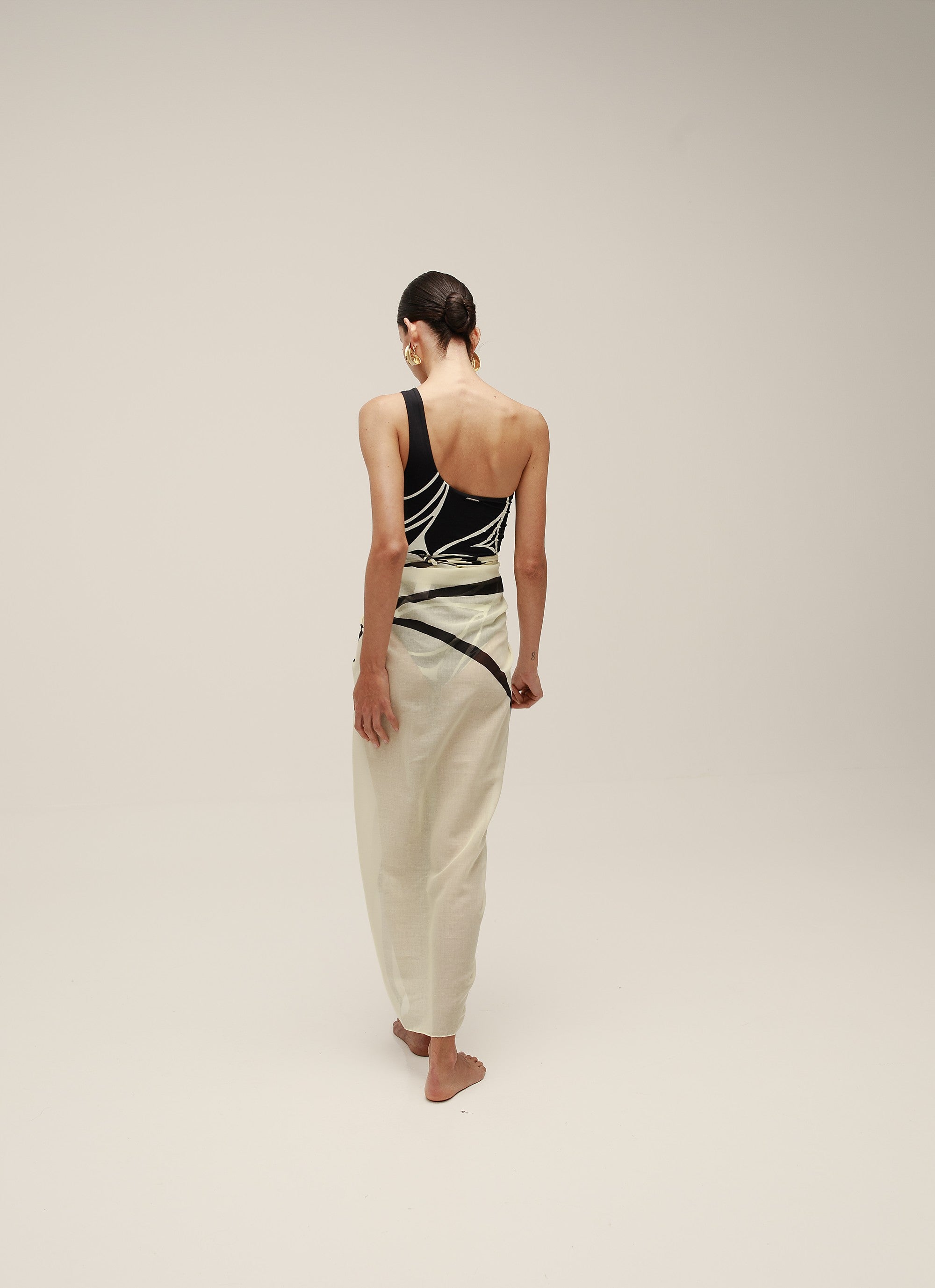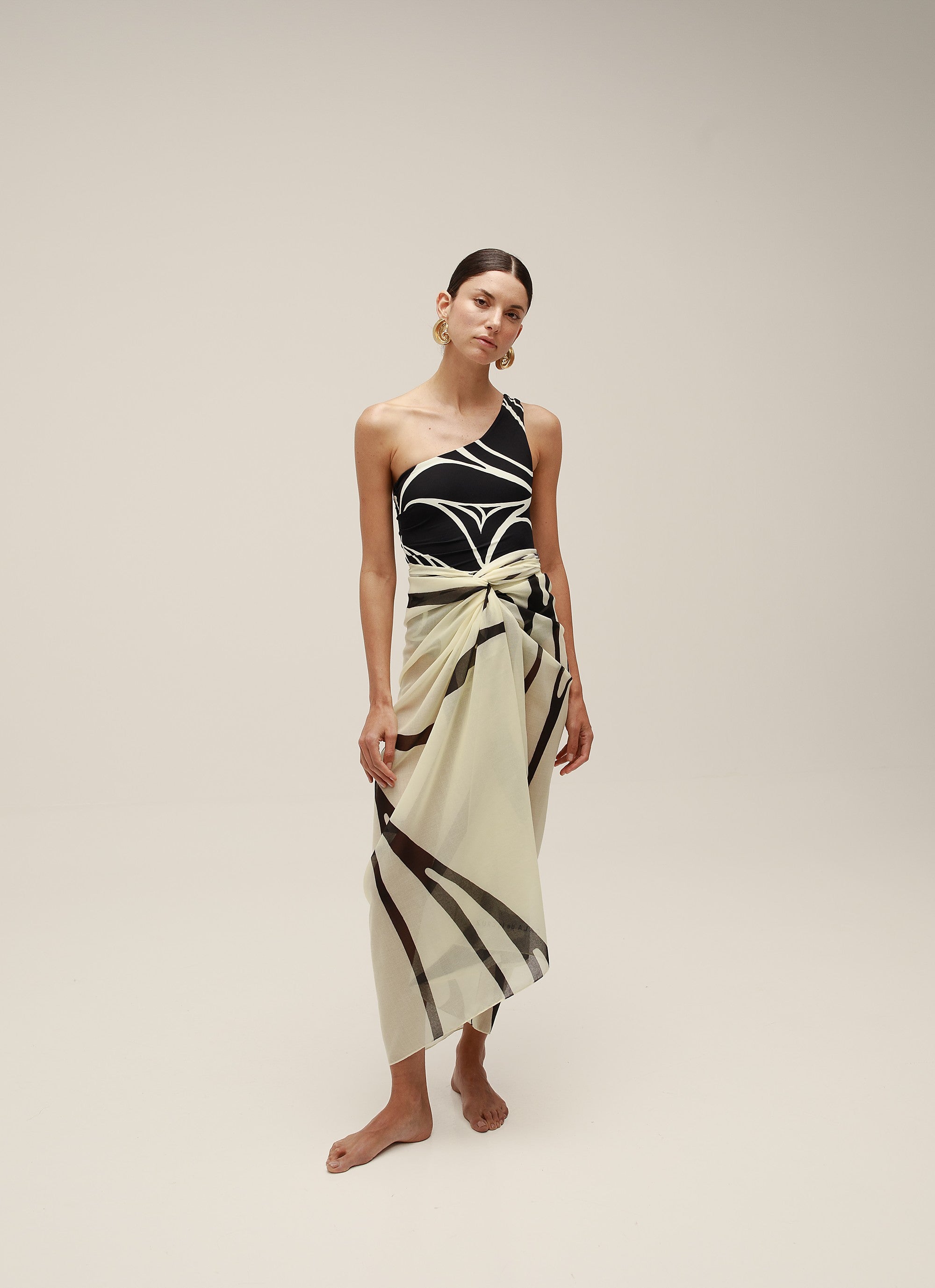 Rectangular sarong 1.80 x 1.17 cm. Made from 100% Recycled Polyester.